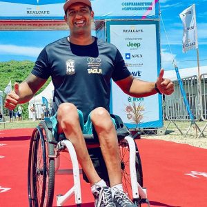 Vinícius competiu na modalidade Duplo Standard Distance, composta por 3 km de natação em mar aberto, 80 km de ciclismo em handbike e 20 km na cadeira de corrida, com o tempo de 6 horas e 15 minutos, que garantiu a medalha de ouro em sua categoria.