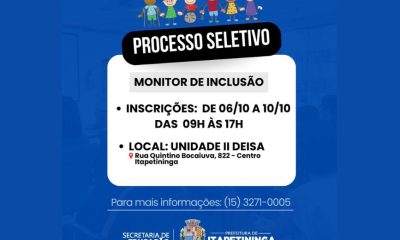 A Prefeitura de Itapetininga, por meio da Secretaria Municipal de Educação, abriu o Processo Seletivo para chamamento de Monitores do Programa Itapetininga Mais Educação – PIME...